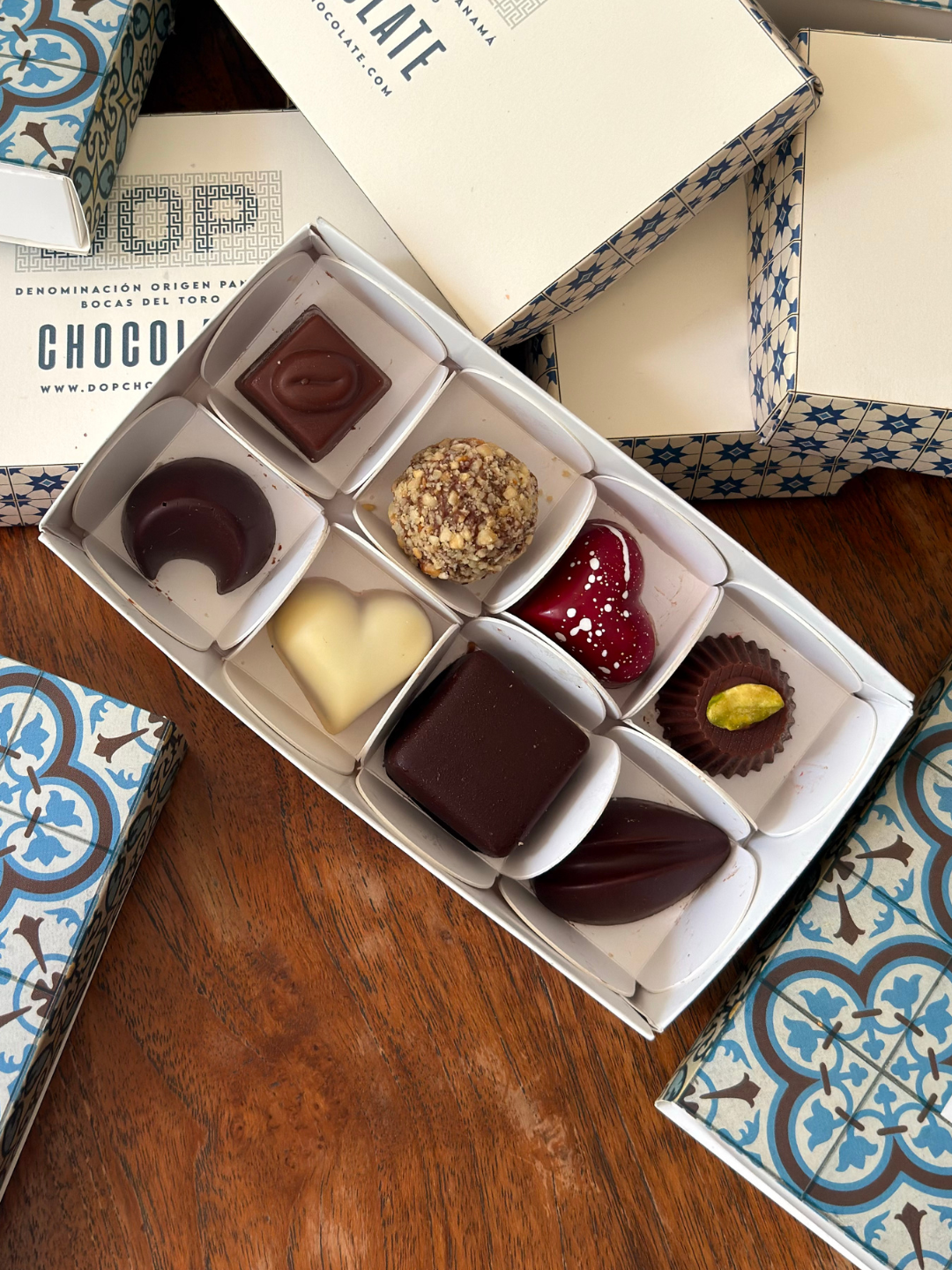 Bean to Bar, Bean to Bombons. From Bocas del Toro, the cacao arrives at the DOP processing plant located in Restaurante Market. Here, we process the beans into these delicious chocolates in a variety of flavors. 70% chocolate is filled with flavors for every taste!