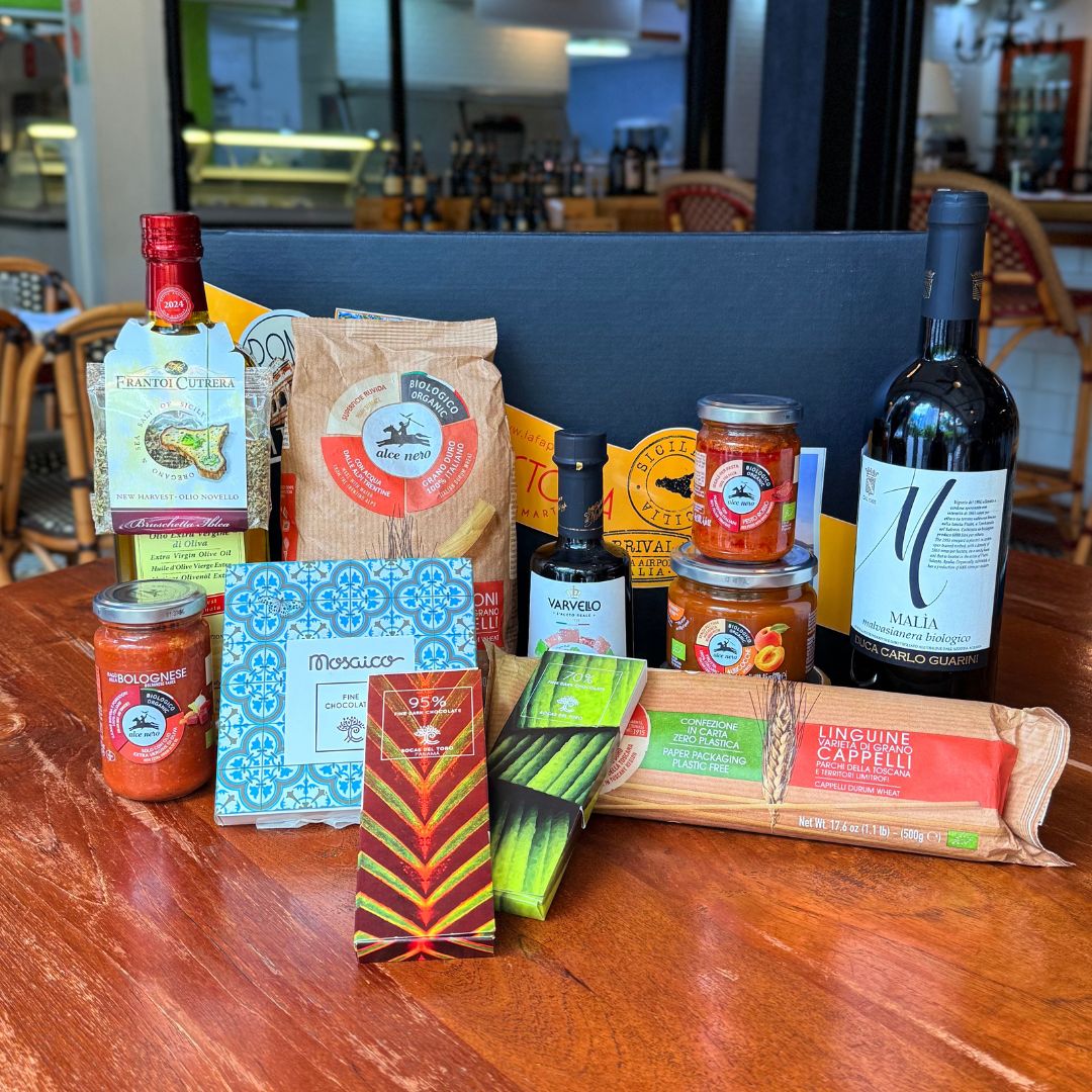 Experimenta la auténtica cocina italiana con nuestro Hamper orgánico mediano de La Factoría. Este exclusivo conjunto de 11 productos presenta una selección cuidada de aceites de oliva, pastas artesanales, salsas, pestos, vino y más. Sumérgete en la esencia culinaria de Italia con este festín de sabores exquisitos y calidad inigualable. Un regalo perfecto para los amantes de la buena comida y la tradición italiana.